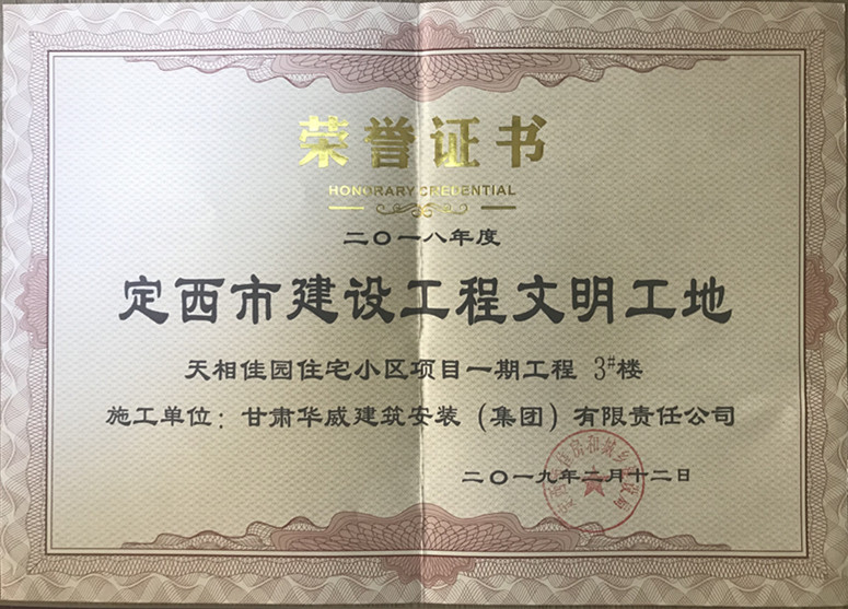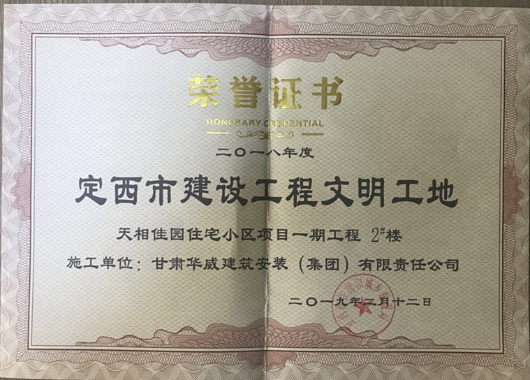 祝贺公司承建的天相佳园住宅小项目一期工程荣获文明工地