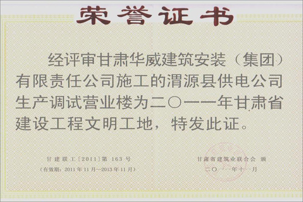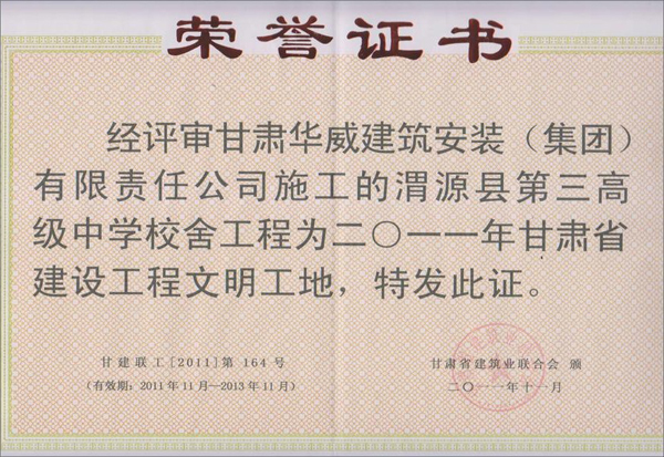 2011年甘肃省建设工程文明工地奖