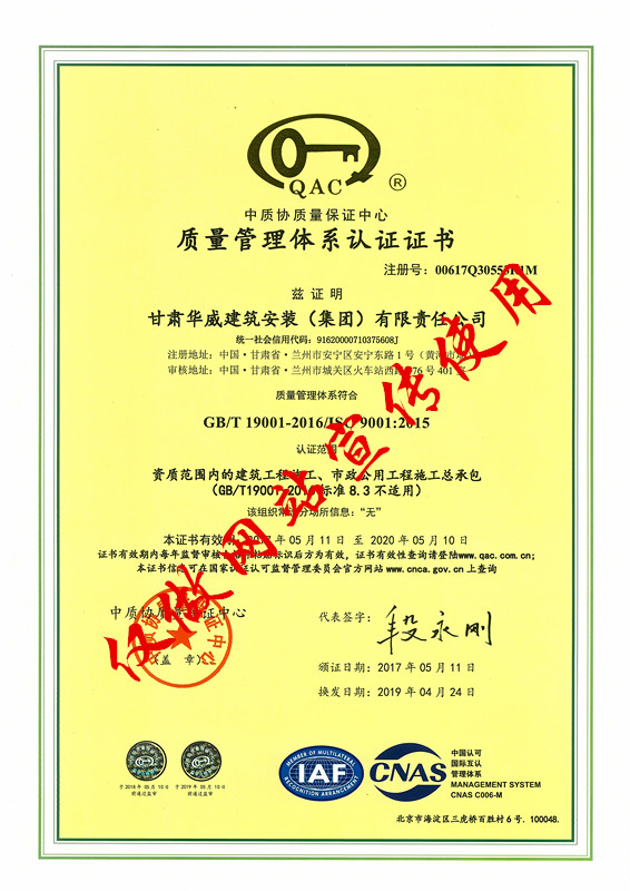 我公司2019年质量管理体系第二次监督审核、环境管理体系及职业健康安全管理体系再认证复审均已顺利通过,已取得新版QMS(2个)、EMS(1个)、OHSMS(1个)标准证书(中/英版)同时旧版证书一律作废。现通知要求公司各部(室)、基层单位、经营实体单位一律使用新版证书,若继续使用旧版证书或新版证书使用不当给公司造成一切损失由相关使用人承担,产生法律后果的公司将追究相关使用人的法律责任,使用过程中对证书若有任何存疑请及时咨询管理者代表安永刚同志。